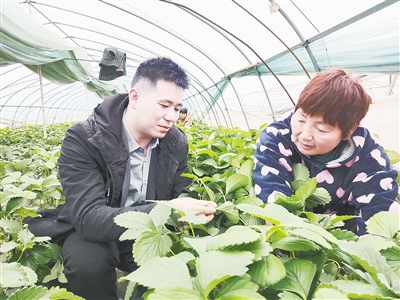春鵬飛詢問農(nóng)戶今年草莓種植情況。