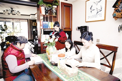 溫媛媛(右一)和家人在“悅心小舍”讀書(shū)。