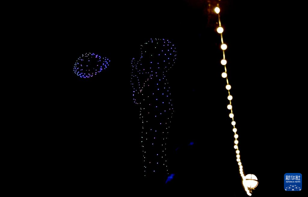2024年1月1日凌晨,在英國(guó)倫敦舉行的新年慶?;顒?dòng)上,無(wú)人機(jī)組成的圖案出現(xiàn)在市中心上空。