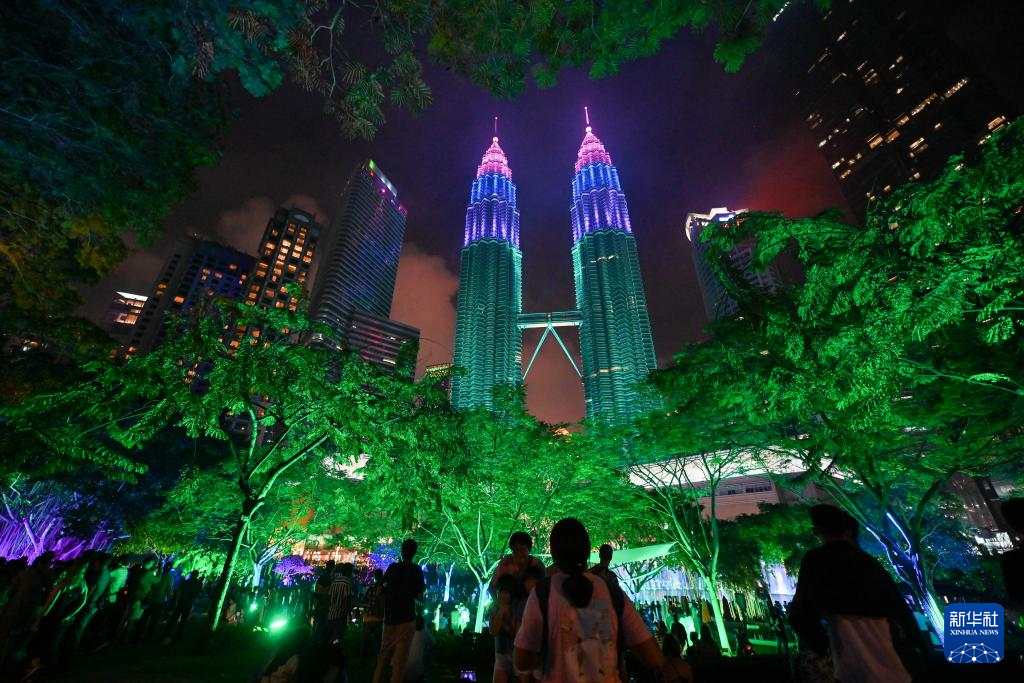 2024年1月1日凌晨,位于馬來(lái)西亞吉隆坡的馬來(lái)西亞國(guó)家石油公司雙塔上演燈光秀迎接新年。