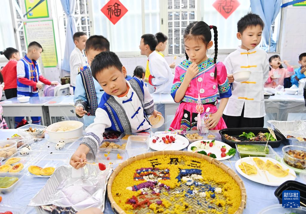 當(dāng)日,廣西南寧市濱湖路小學(xué)舉辦“石榴花開三月三 籽籽同心向未來”活動(dòng),通過唱歌、跳舞、美食展示等豐富多彩的活動(dòng),迎接傳統(tǒng)節(jié)日“三月三”的到來。