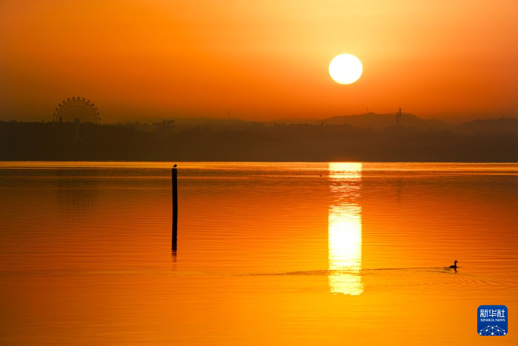 12月14日在武漢市東湖風(fēng)景區(qū)拍攝的日出。