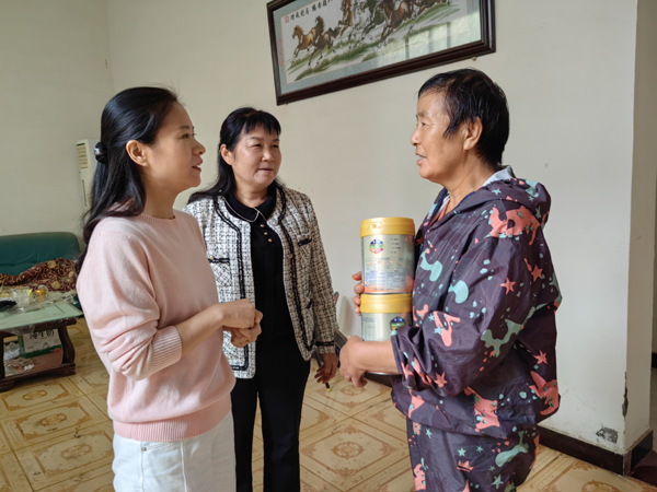 活動中,鎮(zhèn)婦聯(lián)工作人員與巾幗志愿者一同深入各村,走訪慰問了轄區(qū)7個困境兒童家庭。每到一處,李主席都與孩子監(jiān)護(hù)人親切交談,詳細(xì)詢問孩子們近期的生活狀況、身體狀況和學(xué)習(xí)情況,耐心傾聽他們的心聲和實(shí)際困難,并為孩子們送上了精心準(zhǔn)備的優(yōu)質(zhì)奶粉,叮囑家長要科學(xué)喂養(yǎng),關(guān)注孩子的營養(yǎng)健康。